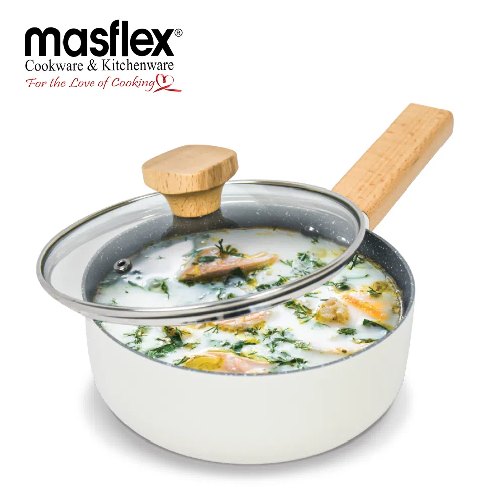 MASFLEX 18CM CREME INDUCTION SAUCEPAN WITH GLASS LID (SM)