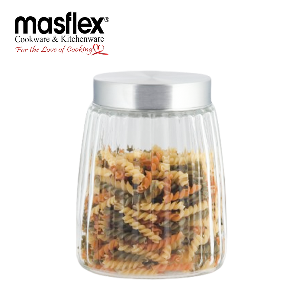 MASFLEX 1.3LITERS RIBBED GLASS JAR WITH LID