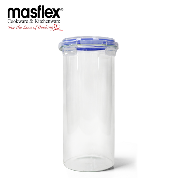 MASFLEX 1200ML AIRTIGHT ROUND GLASS JAR W/ LID(GRN/BLUE)