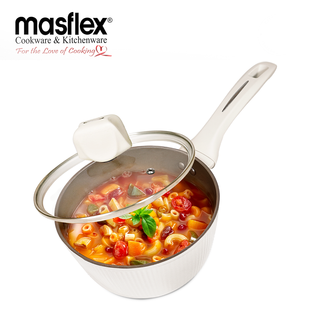 MASFLEX 18CM VANILLA NON-STICK SAUCEPAN WITH GLASS LID