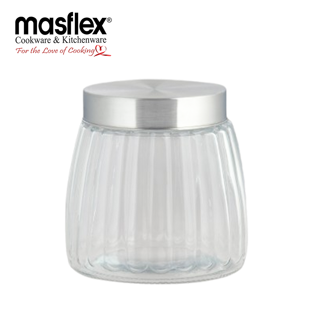 MASFLEX 1L RIBBED GLASS JAR WITH LID130