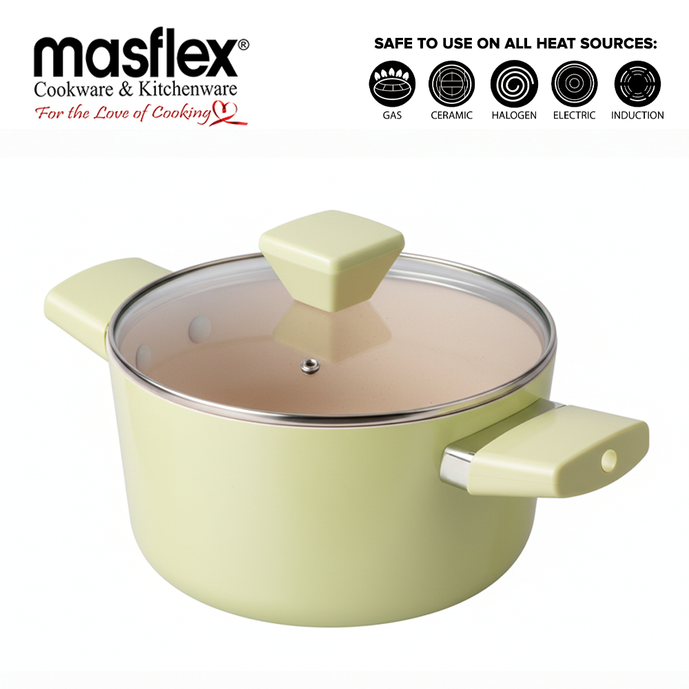 Masflex 24 cm Lime Ceramic Casserole with Glass Lid NS-C71