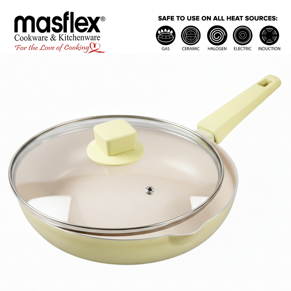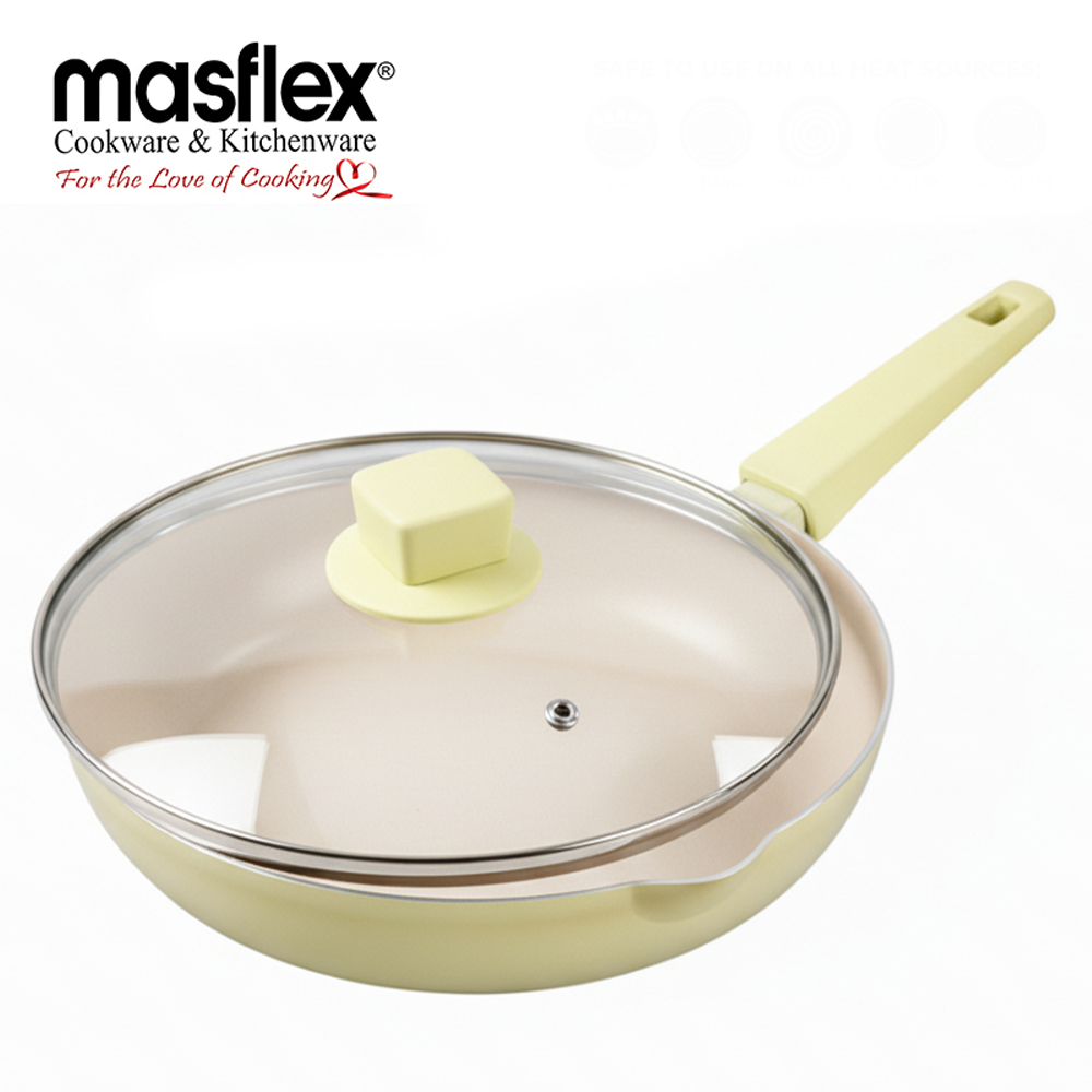 Masflex 28 cm Lime Ceramic Wok with Glass Lid NS-C76