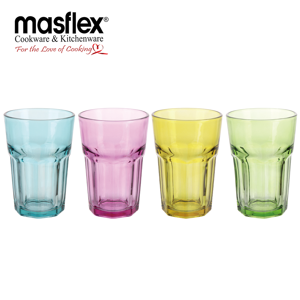 MASFLEX 4 PIECE 15OZ COLORED GLASS TUMBLER