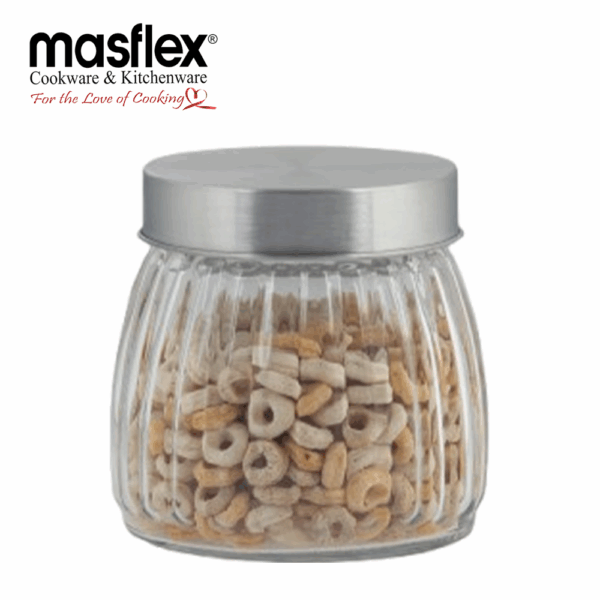 MASFLEX 450ML RIBBED GLASS JAR WITH LID