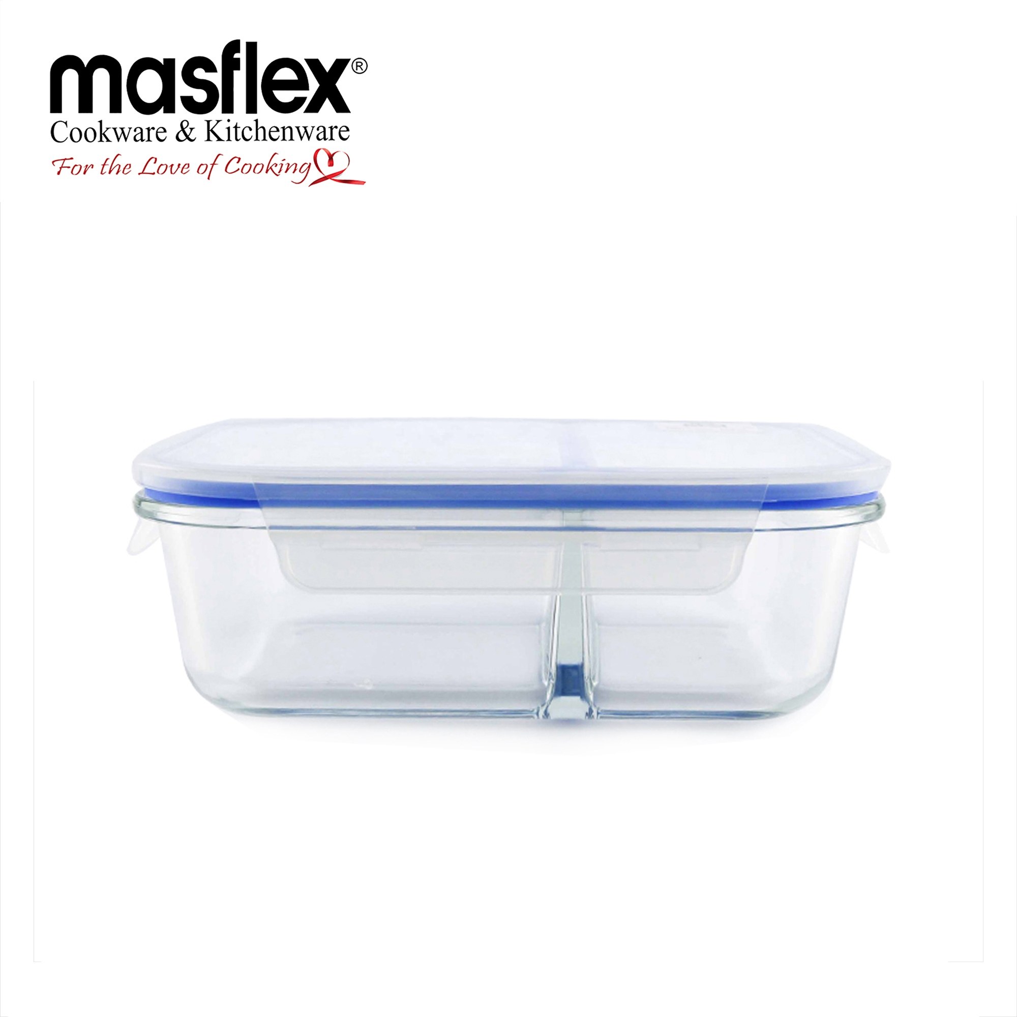 Masflex 640ml Rectangular Glass Food Container W/ Division
